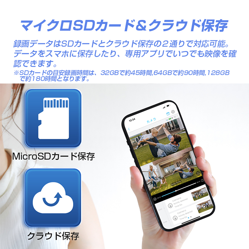 | 備考 | ※インターネット(WiFi)環境が必要となります。 ※24時間フルタイムでの防犯カメラ録画の使用はできません。 映像は電源が入っている限りモニタリング可能ですが、録画タイミングは動体検知後に開始されます。(設定により選択可能) |