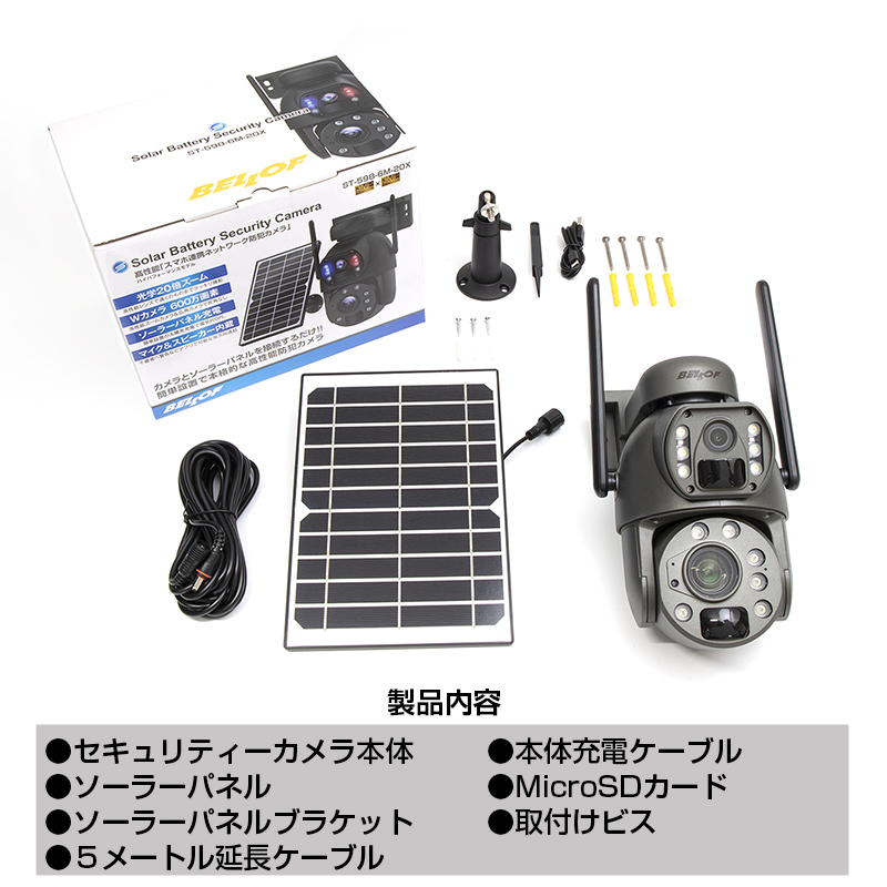 家庭用 2カメラ搭載 ソーラーバッテリーセキュリティーカメラ20X